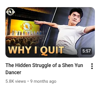 We can’t have this kind of YouTube channel associated with or representing the show, directly or indirectly. You can see the video thumbnail below, but William has not quit Shen Yun and he still works at the campus, so why does this YouTube thumbnail say this? To deceive you in a small way so that you click the video. It is a big deal for us and maybe not to other people, because clickbait is deception.