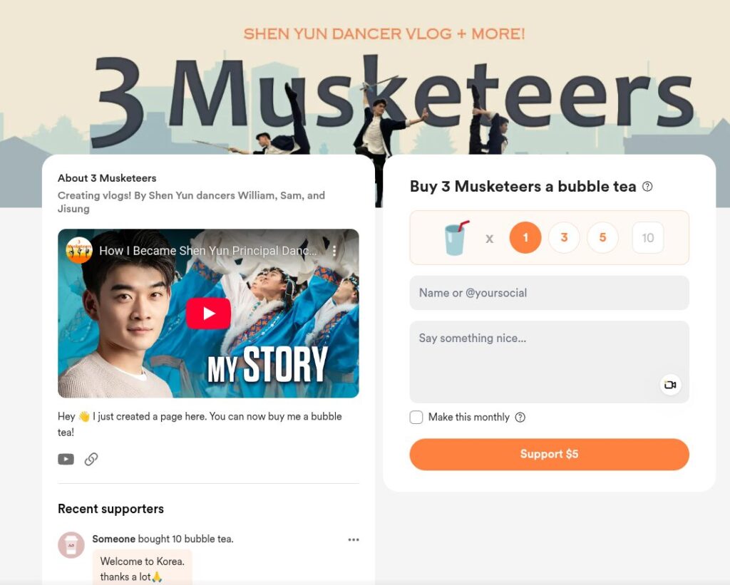 “3 Musketeers” is an unauthorized but persistent social media brand name by three principal dancers from Shen Yun Performing Arts: William, Sam (Pu), and Jisung (Kim). Let me explain why they are completely wrong to make social media where they showcase themselves like this. They aren’t saying, “Here is what we did today. See our photos and videos of the places we visited. You can also ask us questions.” I don’t see a problem with that. They are instead saying, “Here is everything we are as dancers, our lives, our views, and how Shen Yun works, everything about it, etc.” all without permission, over and over for years. There is the obvious problem with this which is it is them pursuing fame at the expense of Shen Yun’s name with their online personalities that are often off-putting and don’t have any connection to an experience of the show. Their personalities and the things they put in their videos are actually often very bad. They don’t speak during the performance, after all, and their desire to talk about themselves online is entirely out of attachment to fame.